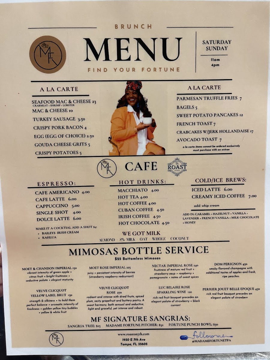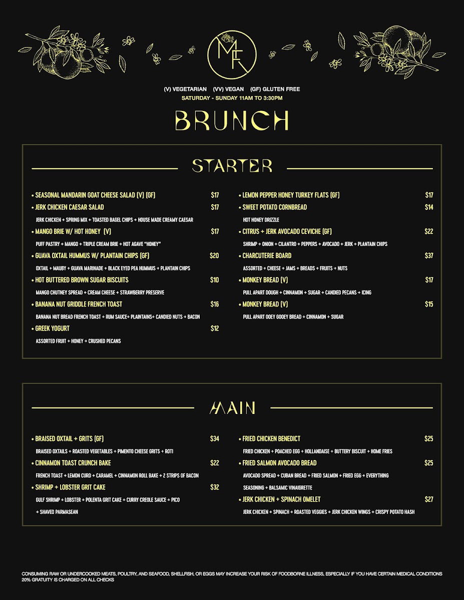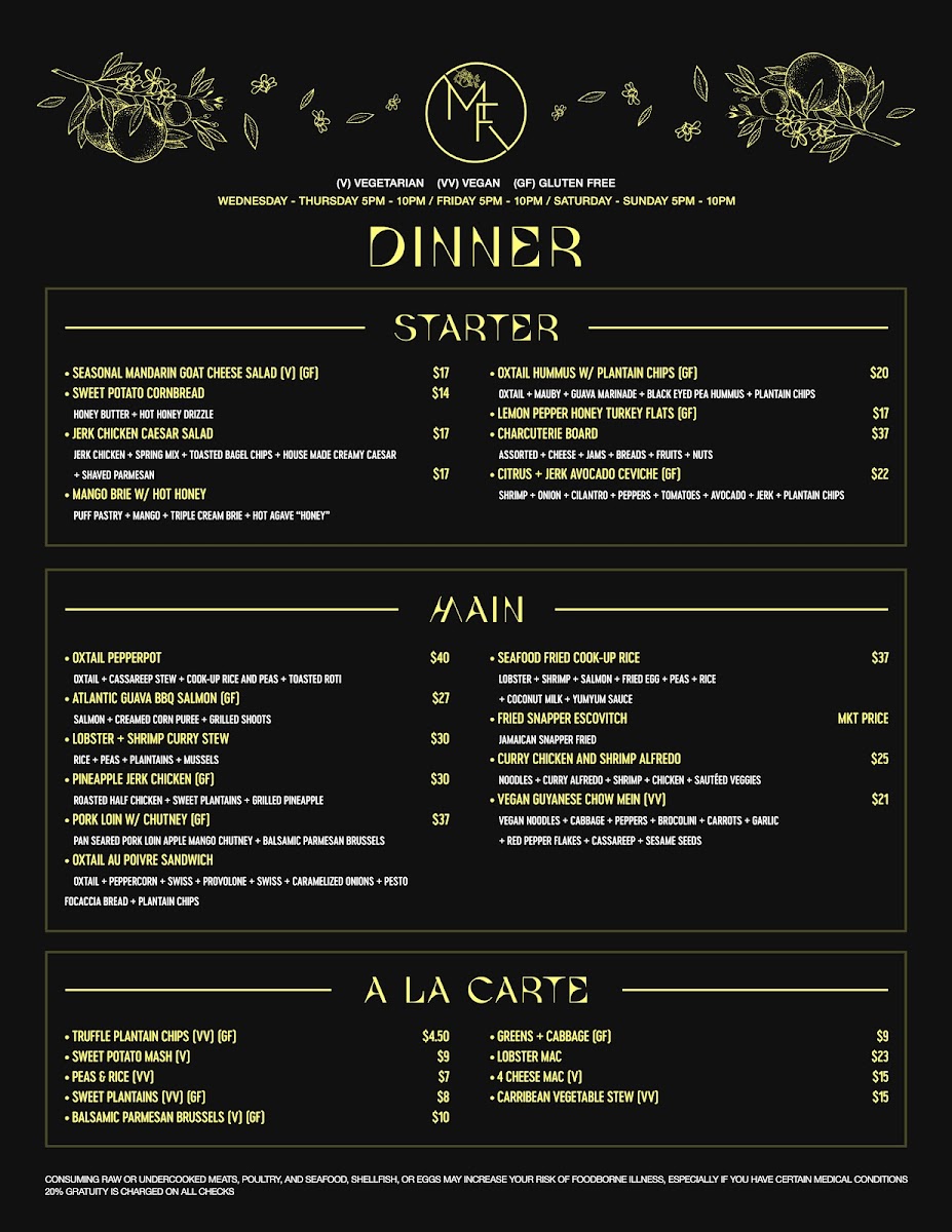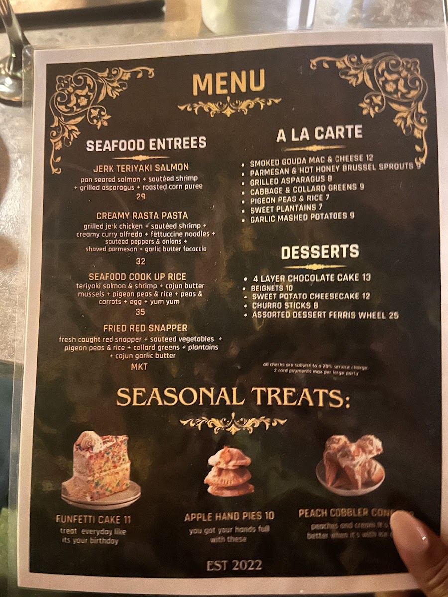 The menu at Madame Fortune Dessert + HiFi Parlour offers a blend of comforting, flavorful dishes and creative drinks that suit a relaxed yet vibrant dining experience. Here, you'll find a thoughtful mix of Southern-inspired dishes with Caribbean influences, alongside inventive cocktails that add a unique twist to the evening.